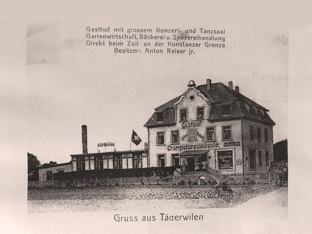 Die im Jahr 1904 errichtete Jugendstil-Villa wurde 1905 von Anton Reiser übernommen, der in der Villa ein Restaurant mit Café, Kolonialwarenladen sowie acht Gästezimmern einrichtete. Er nannte dieses Anwesen Trompeterschlössle, da ihn Victor von Scheffels Oper „Der Trompeter von Säckingen“ begeistert und somit zu diesem Namen inspiriert hatte.