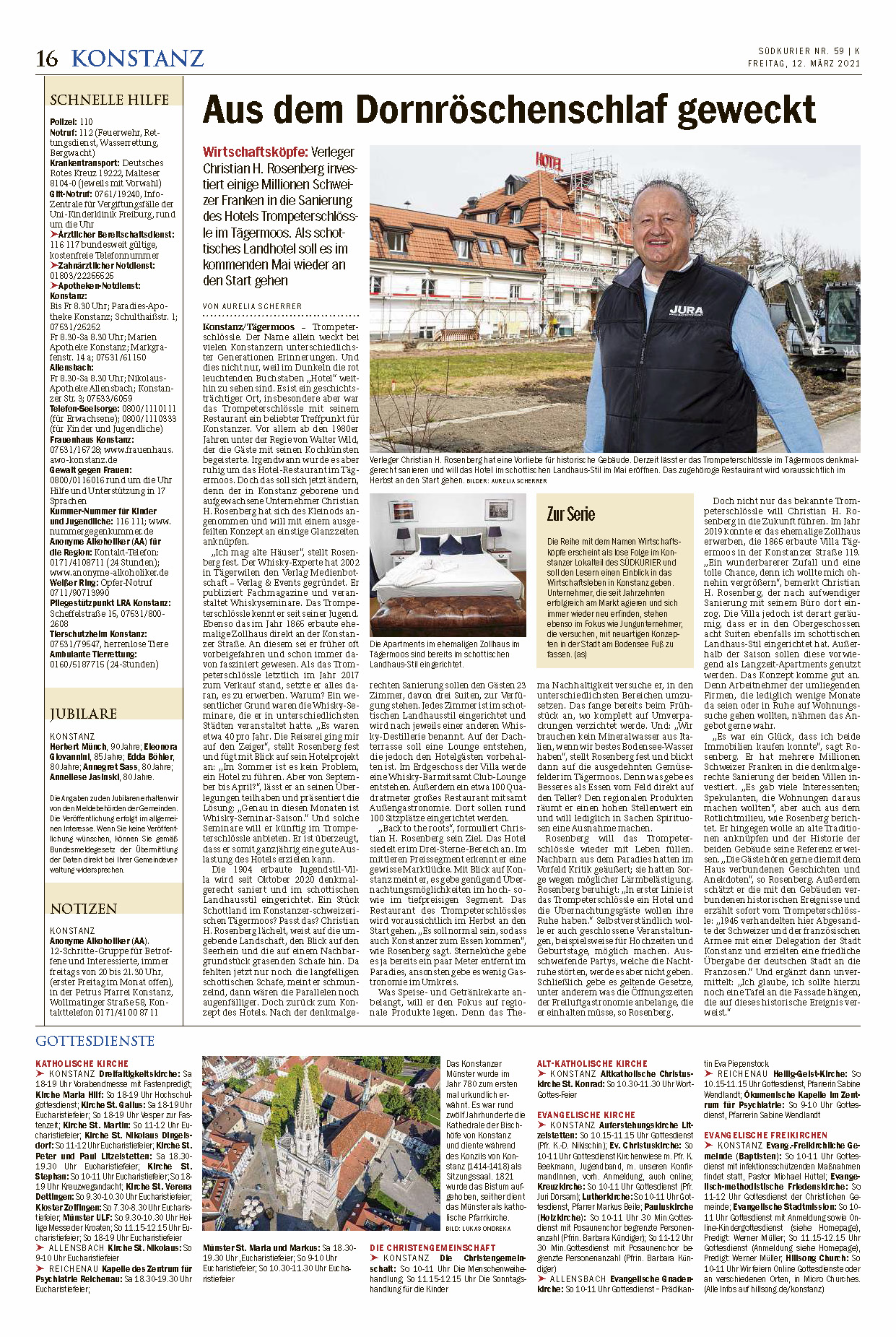 Hier finden Sie komprimiert alle wichtigen Informationen rund um das Trompeterschlössle Hotel & Résidence. Nutzen Sie unsere Pressemitteilungen und veröffentlichen Sie diese in Ihren Medien. Wir würden uns freuen, wenn Sie über uns berichten und uns darüber informieren, wo entsprechende Artikel zu finden sind. Ob im Print / Online / Radio ... wir freuen uns über jeden Beitrag!
