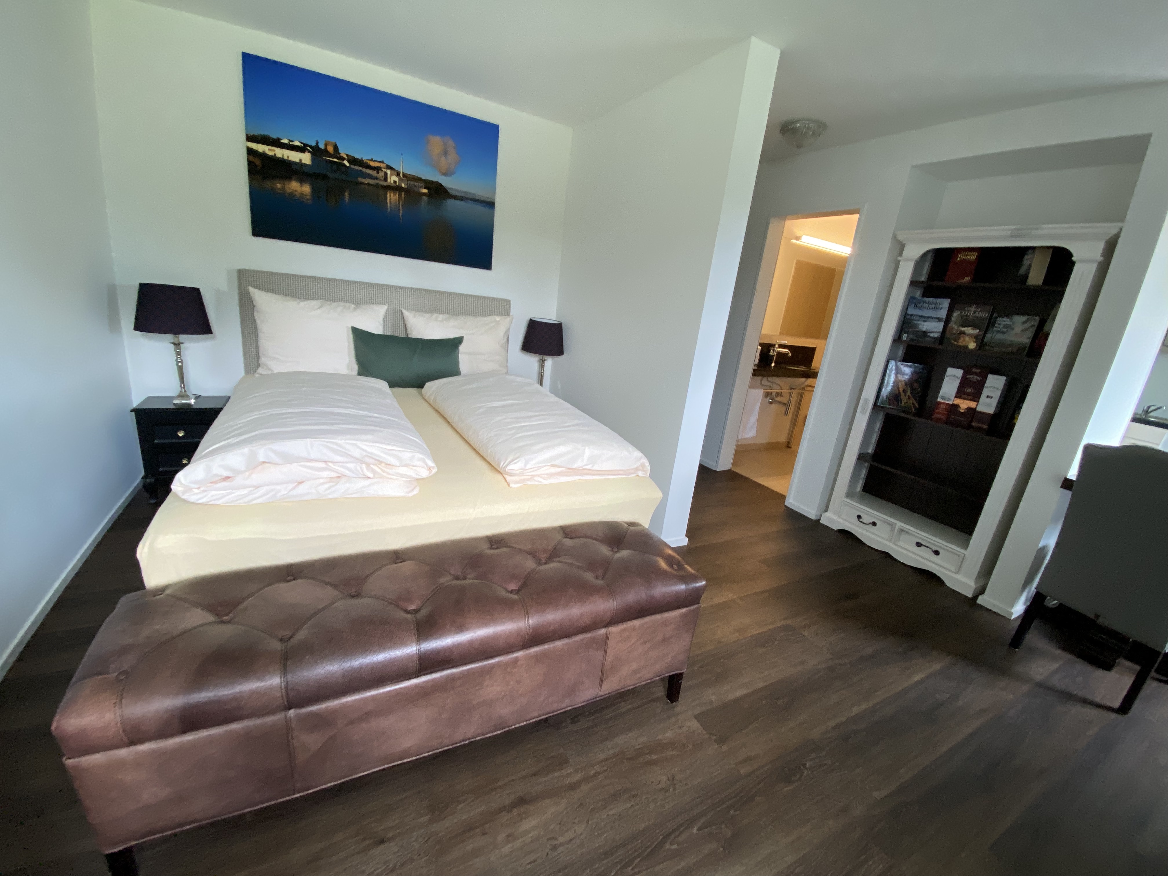 Warme Farbtöne, edle Stoffe und hochwertige Materialien schaffen eine harmonische Verbindung zwischen den Schottischen Highlands und dem heimischen Tägermoos und lassen unsere Standard Apartments zu einem stillvollen Ort des Wohlfühlens werden.