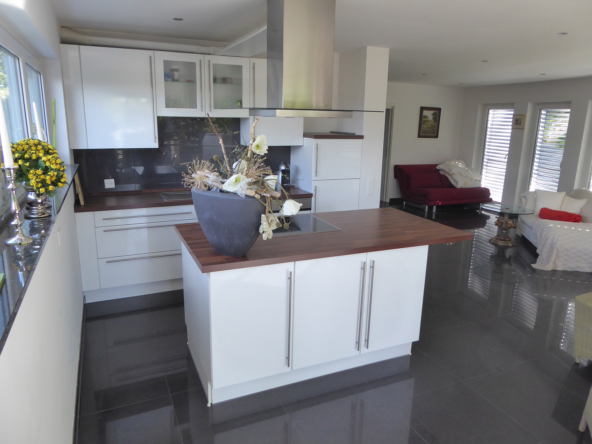 Unsere Ferienwohnungen „Rheinblick Rheinblick“ liegen im charmanten Tägerwilen am Bodensee. Die hellen, exklusiv und modern eingerichteten Nichtraucher-Ferienwohnungen haben eine Wohnfläche von ca. 90qm2 und liegen ruhig in einem Villen Viertel. Mit einer Wohnküche, zwei Schlafzimmern, komfortablem Bad mit Dusche und Badewanne, sowie einer separaten Gäste-Toilette sind die Ferienwohnungen wohnlich geschnitten. In der Einbauküche ist ein Umluftherd, Ceran Kochfeld, Kühlschrank, Mikrowelle, Kaffeemaschine, Wasserkocher, sowie alle wichtigen Küchenutensilien vorhanden. Der Wohnbereich mit einem Essplatz für 4 Personen, Schlafsofa und Sat.-TV führt zur Terrasse mit Gartenlounge. Die beiden Schlafzimmer sind mit einem Doppelbett und Kleiderschrank gemütlich eingerichtet.
